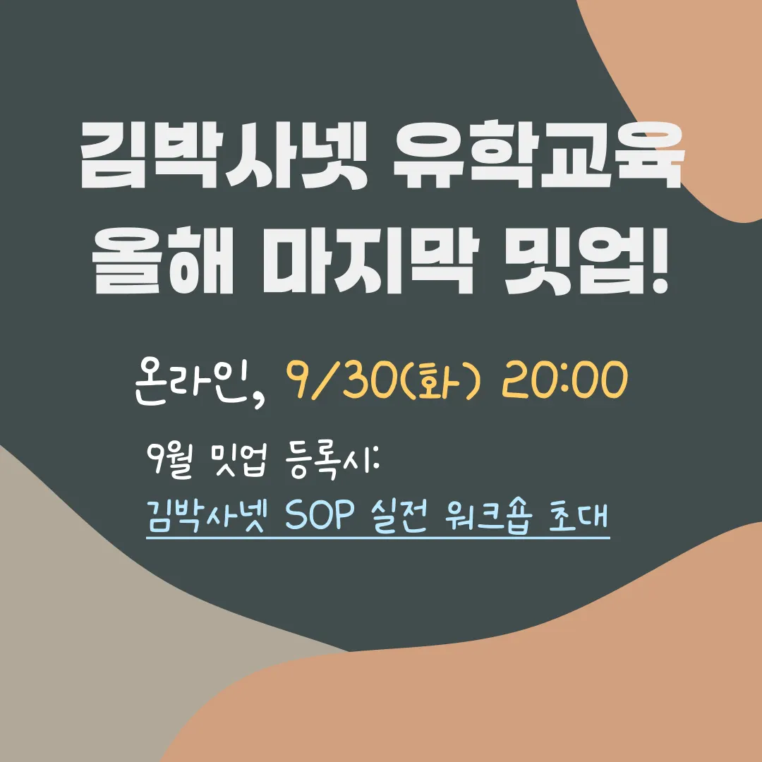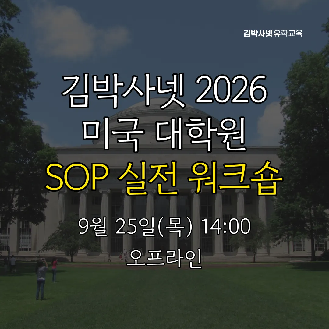 김박사넷 2026 미국 대학원 SOP 실전 워크숍: 합격 사례 분석 & 전문가 피드백 (9/25)